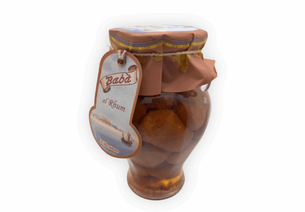 I Babà al Rhum sono uno dei simboli della tradizione dolciaria napoletana. In questo pratico vaso di vetro trovi babà soffici, ben imbevuti e profumati, immersi in una generosa bagna al rhum.